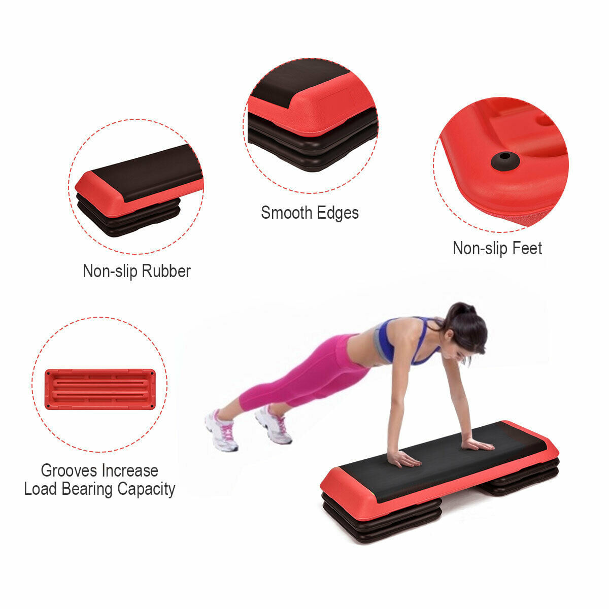 The fitness aerobic step is ideal for work out classes or regular home use. With it you can invite your friends or family to take exercise together to keep healthy and fit either at home or in the office. Three levels that can be stackable are very convenient to meet various needs. With a weight of 18 lbs it is easy to carry and assemble. Aerobic step will give you a unique and professional aerobic exercising experience.