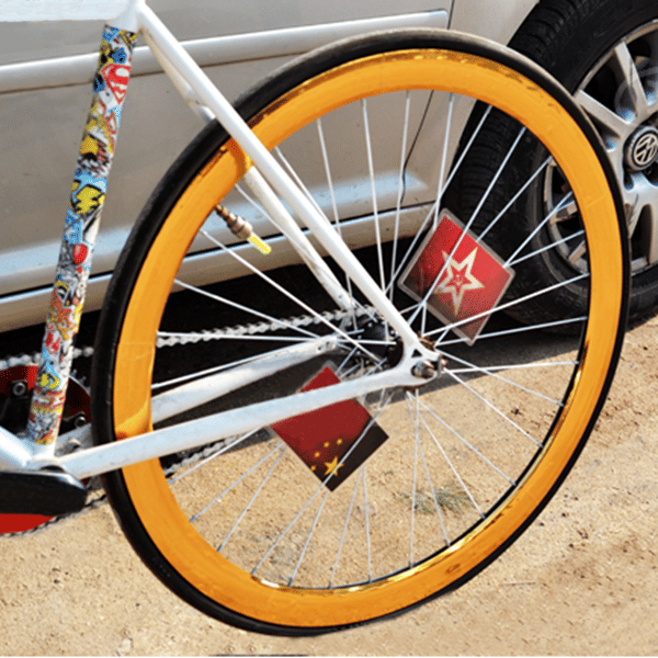 Fixed Gear Bike Bicycle Wheel Group Reflective StickersSpecification:Product name: Bicycle wheel stickersColor: GoldWheel width: 30mm,40mm,45mmFeatures:The material is waterproofThe color will not fadeSynthetic polymer PVC thin film,not easy to discolorWith memory function and the ability to extend and stretch,very easy to fit your bicycleNote:30mm-45mm is suitable for 24 to 26 inch bicycle wheel,please comfirm your bicycle wheel size before you buy itOne order is 5 pieces of one side of the wheel,if you need to plaster 2 wheels,you need to order for 4Package included:5 X pieces of stickers
